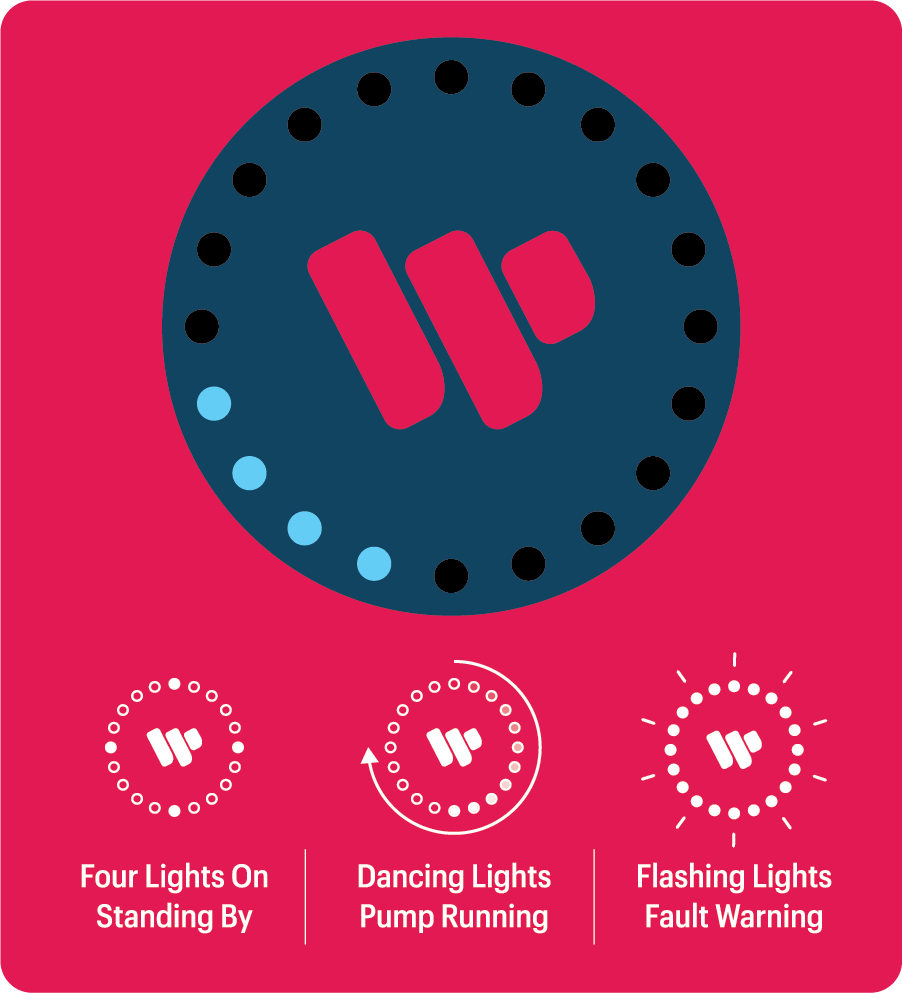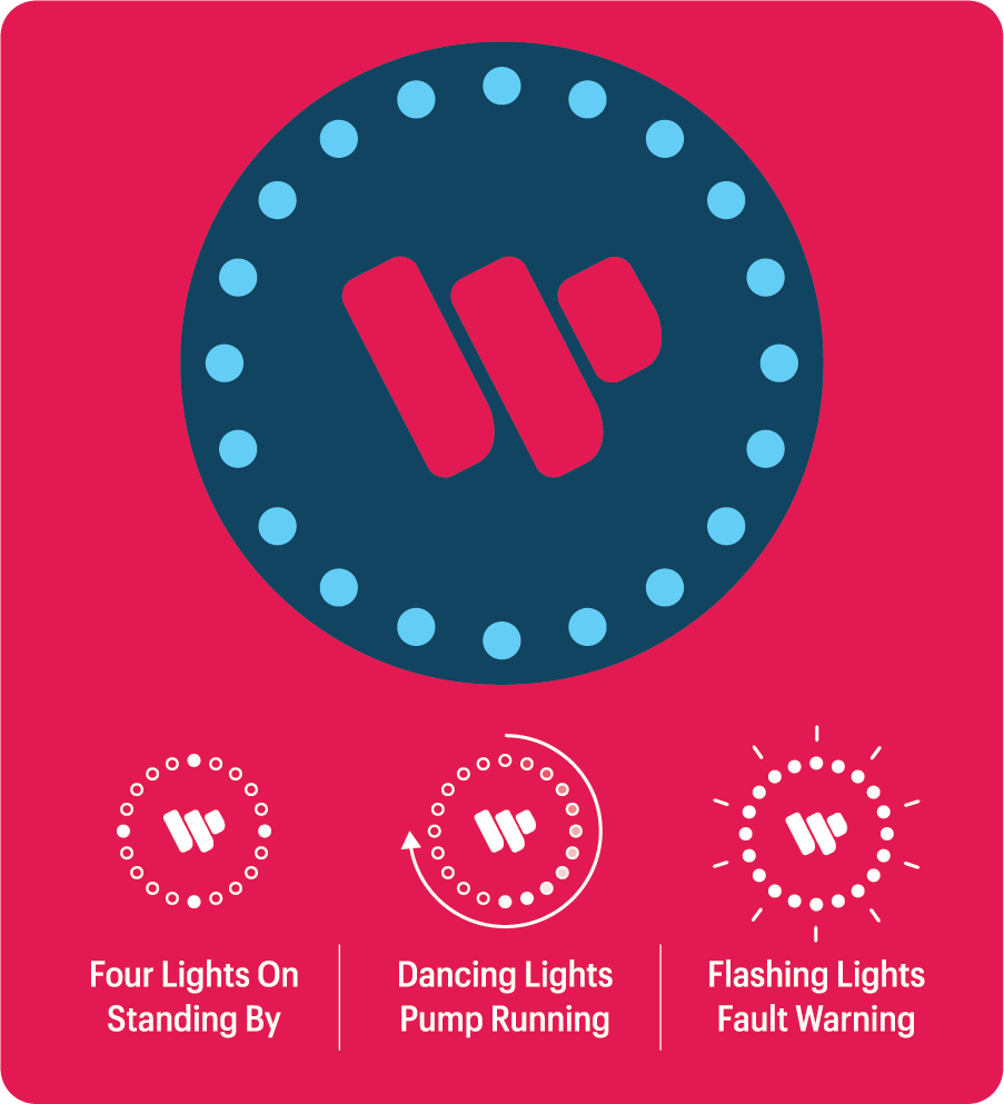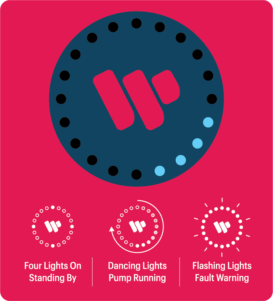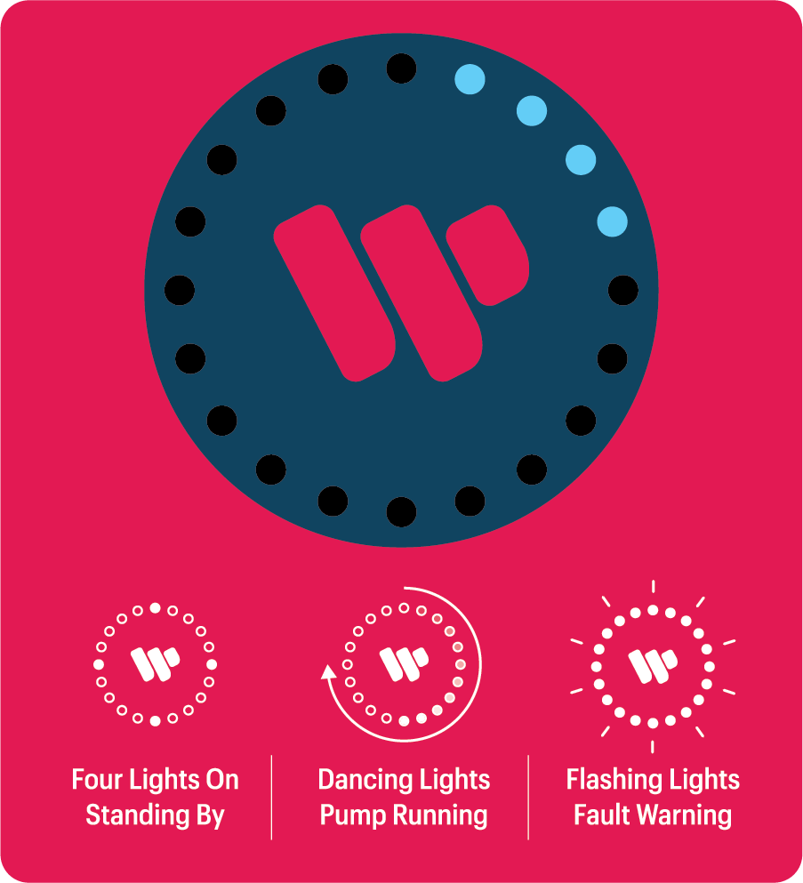 The Walkston Automated Pump has 20 LED’s arranged in a circle to indicate the operating mode as well an alarm indications.